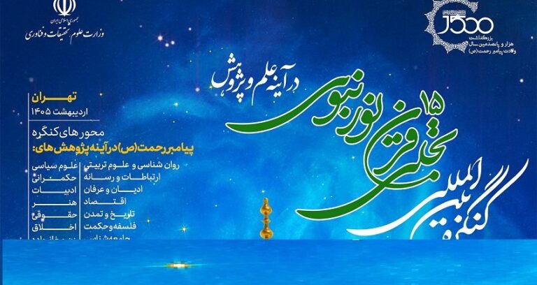 به گزارش خبرنگار مهر، به مناسبت هزار و پانصدمین سالگرد ولادت با سعادت نبی مکرم اسلام، حضرت محمد مصطفی (ص)، کنگره بین المللی «تجلی ۱۵ قرن نور نبوی در آینه علم و پژوهش» با همکاری نهادهای علمی، فرهنگی و بین المللی اردیبهشتماه ۱۴۰۵ برگزار میشود. این کنگره عظیم، با