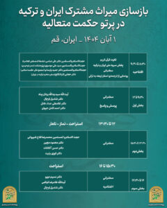 زمان: پنج شنبه 1 آبان ماه ۱۴۰۴(23 اکتبر ۲۰۲۵)، ساعت 8 الی 18
