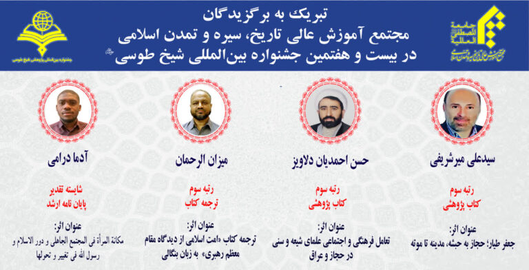 برگزیدگان جشنواره بین المللی شیخ طوسی (ره) از مجتمع آموزش عالی تاریخ، سیره و تمدن اسلامی